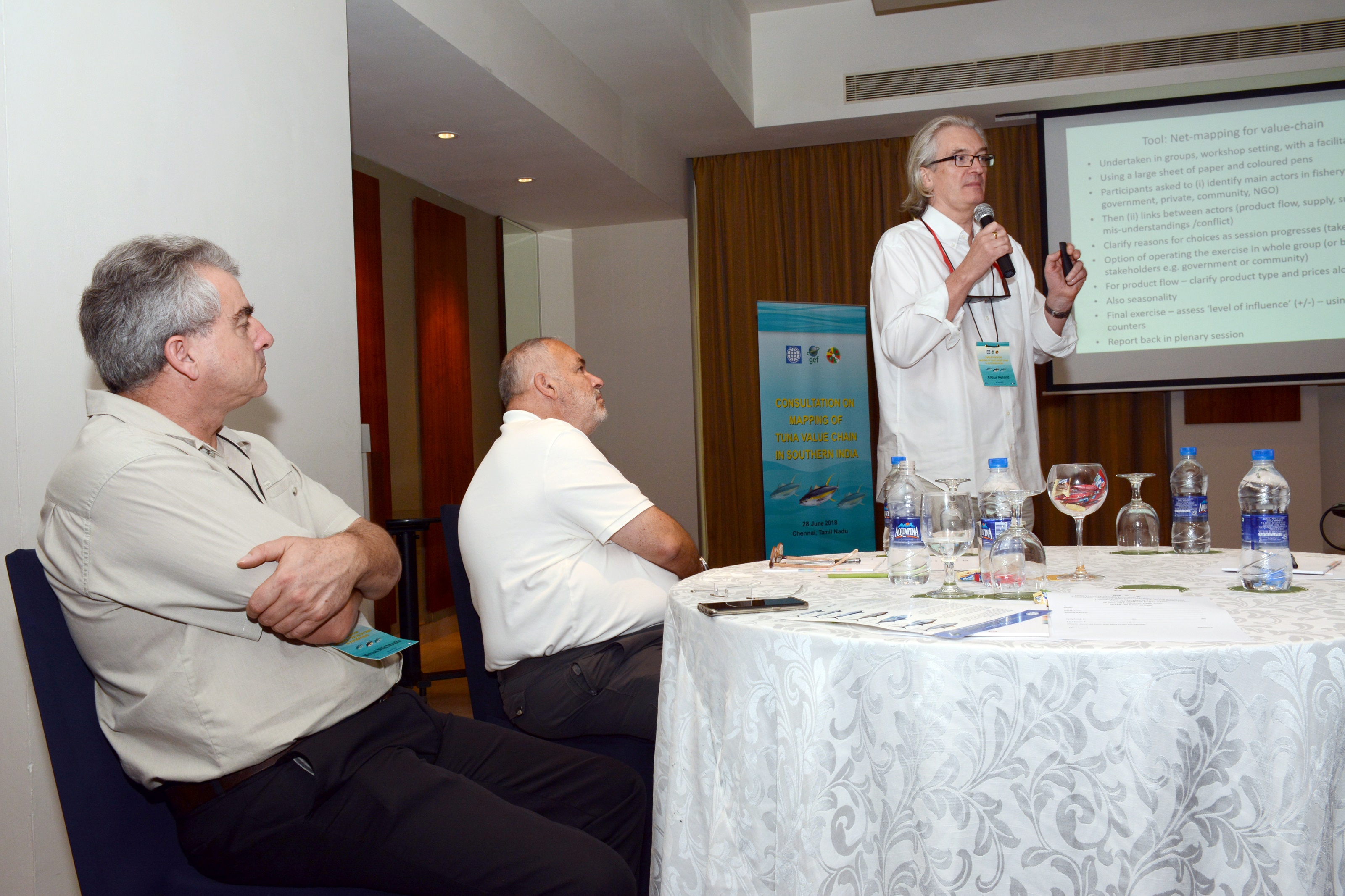 A Workshop was held to map the tuna value chain in southern India on 28 June 2018. The objectives of the Workshop are to describe the tuna value chains in south India with the help of stakeholders; To better understand the key issues involved; and to use the results to inform the work of the Ocean Partnership Project being implemented by the BOBP with a funding from the World Bank (TF 018233). Twenty-four Participants representing exporter/processing sector, fishers and scientists took part. The outputs of the Workshop are mapping of tuna value chain in eastern and western coast of Southern India. Following are some moments from the Workshop.