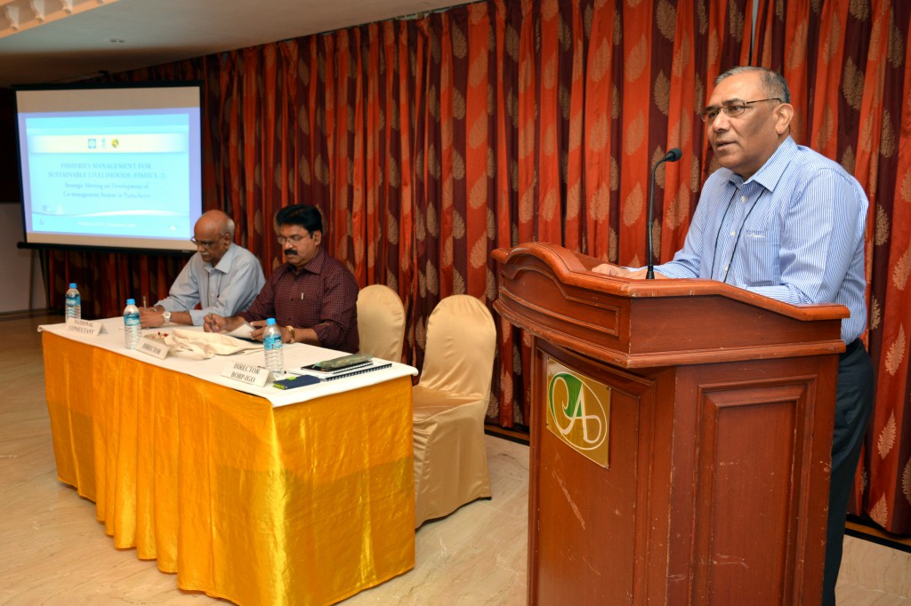 The Bay of Bengal Programme Inter-Governmental Organisation (BOBP-IGO) in association with the Department of Fisheries & Fishermen Welfare, Puducherry, organized a one-day Strategic Meeting (SM) on ‘Development of Co-management System’ in Puducherry on January 9, 2017 at Hotel Annamalai International, Puducherry. The broad objective of the SM was to prepare an agreed work plan detailing the strategy on development of co-management system in Puducherry for presentation to fisheries stakeholders in the Union Territory (UT) of Puducherry for their consideration.